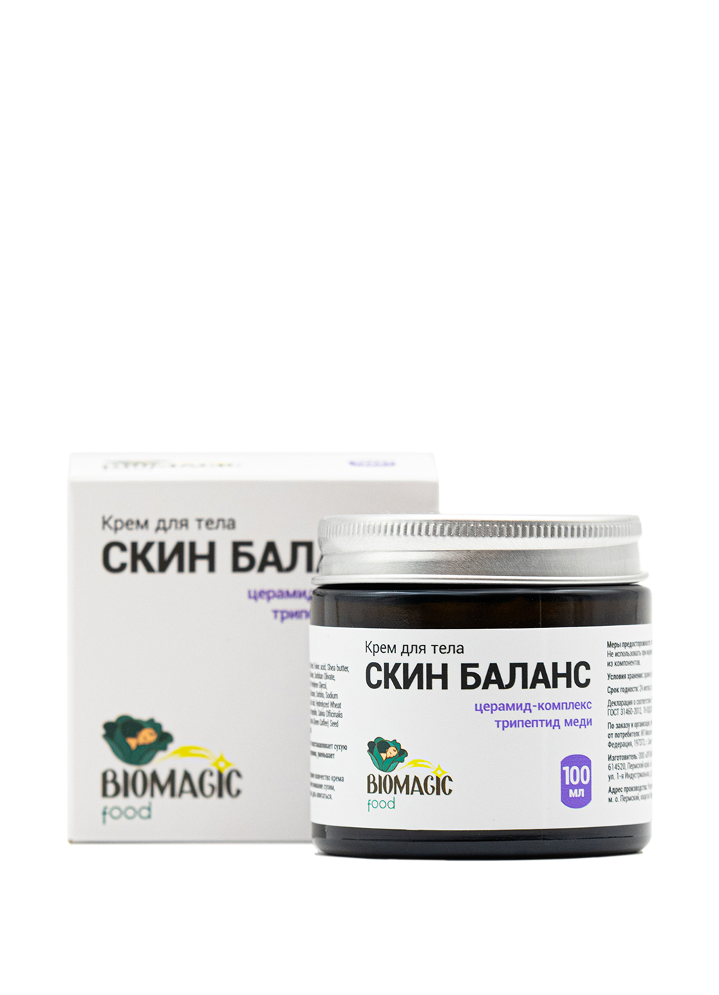 Крем для тела "Скин Баланс" от BioMagic food — это глубокое восстановление для вашей кожи. Крем эффективно увлажняет, питает и восстанавливает сухую и обезвоженную кожу. Также крем "Скин Баланс" устраняет шелушения, уменьшает раздражение и покраснения. Безопасный состав без парабенов и SLS подходит даже для чувствительной кожи.