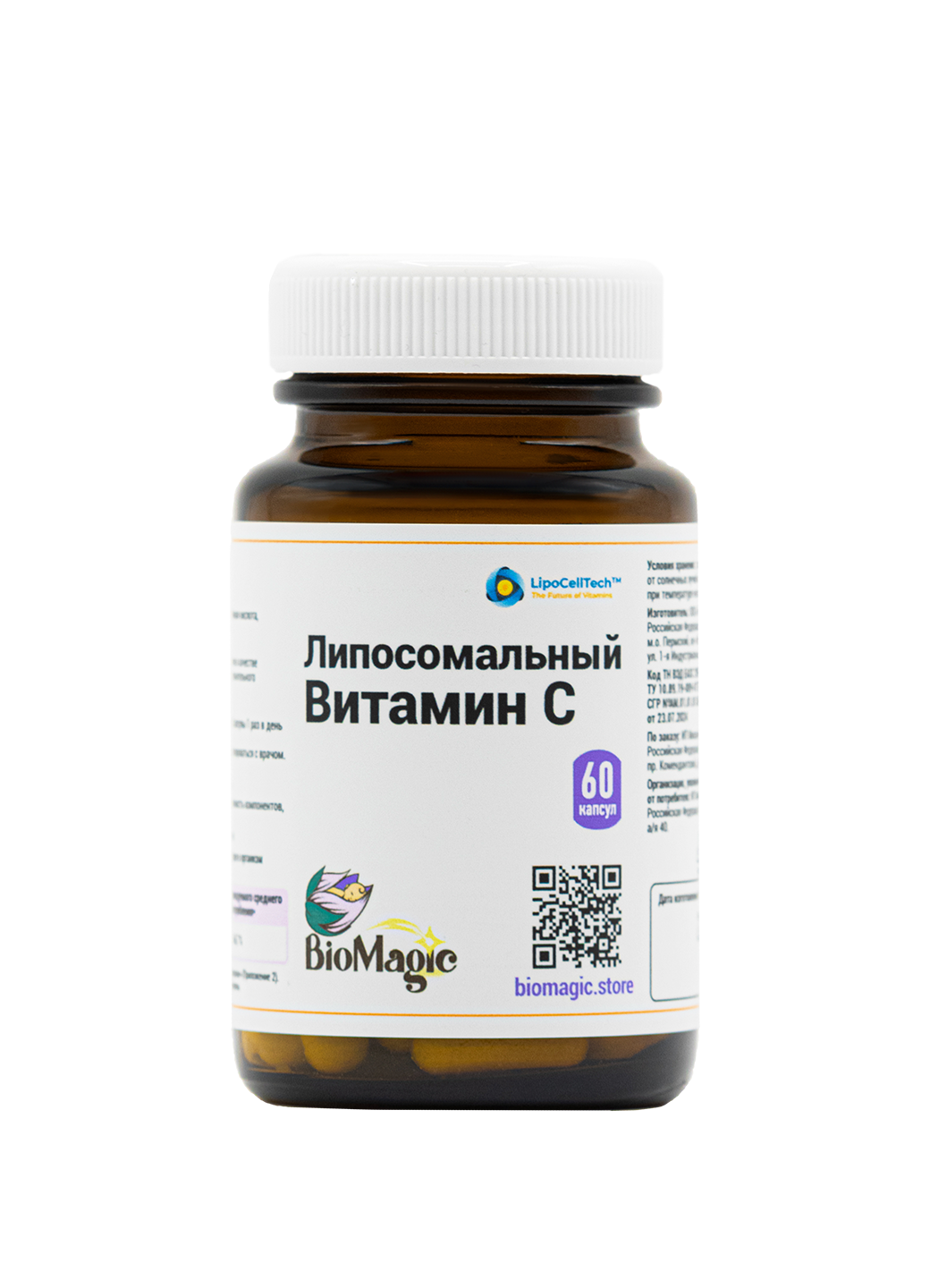 На упаковке вы можете увидеть логотип британской компании Lipocelltech. Они изготавливают липосомальные продукты нового поколения. Их липосомы являются 100% натуральными и практически полностью усваиваются организмом. Мы подписали соглашение с данной компанией и теперь BioMagic производит уникальный витамин С из качественных и стабильных лиопсом. Эта технология гарантирует, что активные ингредиенты останутся нетронутыми, а созданную липосому человеческий организм будет распознавать как свой собственный материал.