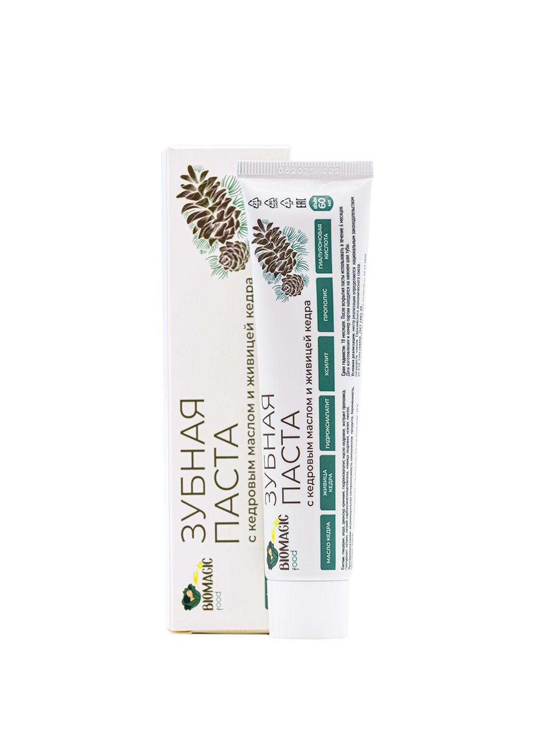 Зубная паста с кедровым маслом и живицей кедра от BioMagic food — это забота о вашей улыбке с силой природы. Зубная паста обладает приятным вкусом, создает ощущение свежести, устраняет неприятный запах изо рта. Кедровое масло содержит витамин E, способствует укреплению твердых и мягких тканей полости рта. Живица кедра, входящая в состав зубной пасты, содержит натуральные иммуноактивные и антибактериальные вещества, которые обеспечивают профилактику кариеса и способствуют укреплению десен. Идеально подходит для ежедневного использования, оставляя ощущение чистоты и лёгкий аромат таёжного леса. Подарите себе натуральную защиту и сияющую улыбку с нашей зубной пастой.